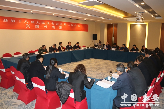 12月26日下午,秦安县第十八届人民代表大会第二次会议代表进行分团讨论,县委副书记、县长程江芬参加兴国代表团审议《政府工作报告》。县委常委、兴国镇党委书记王明,县人大常委会副主任张耀清,县人武部政委张洪峰参加了审议。