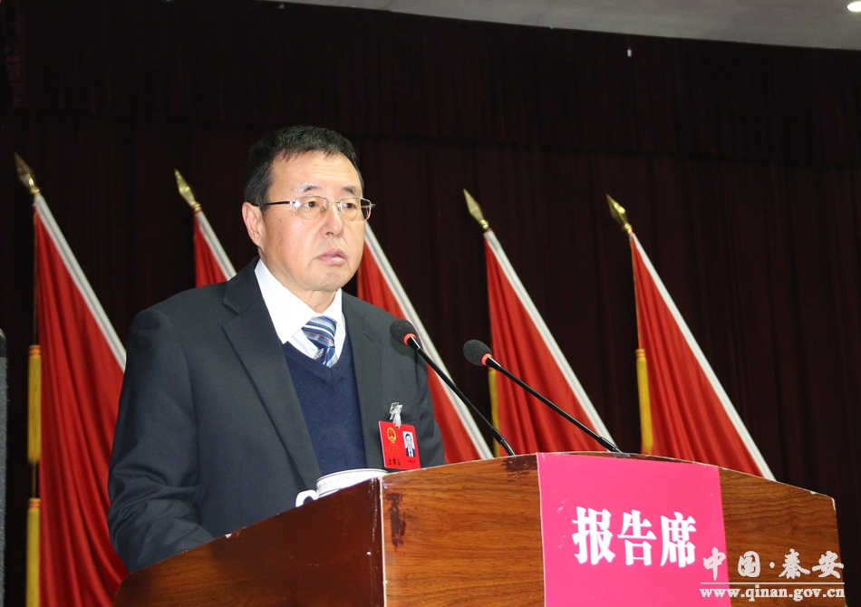 县人大常委会主任郭海军代表秦安县第十八届人民代表大会常务委员会向大会作工作报告。