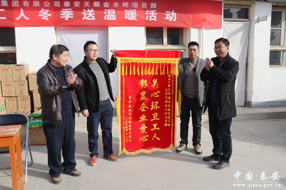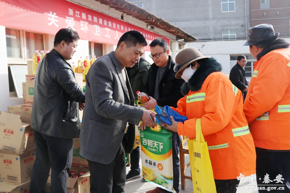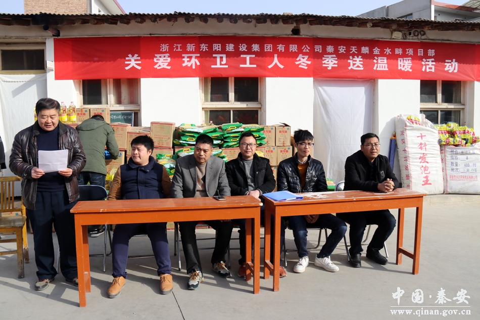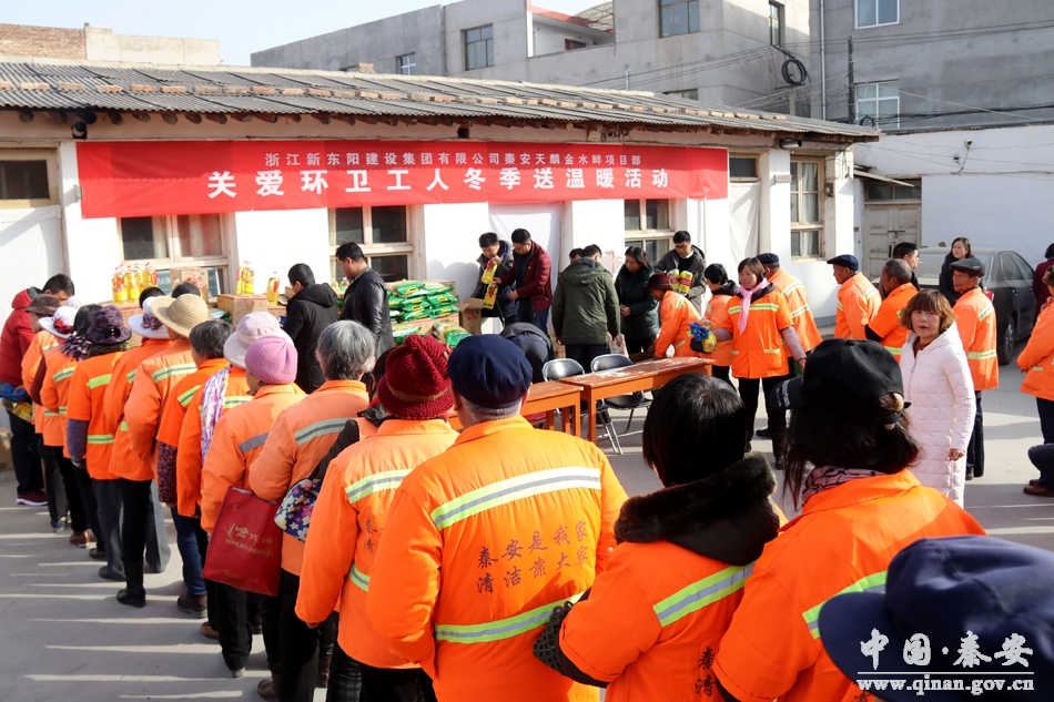 12月31日,秦安县举行浙江新东阳建设集团有限公司秦安天麟金水畔项目部关爱环卫工人冬季送温暖活动。县住建局负责人,浙江新东阳建设集团有限公司天水项目部总经理、经理、分公司主管,县环卫所干部及部分环卫工人代表参加了活动。