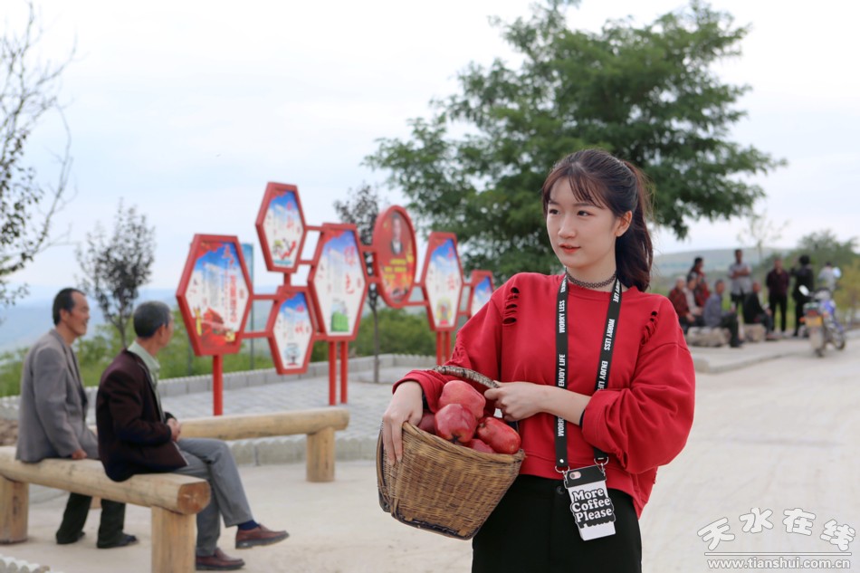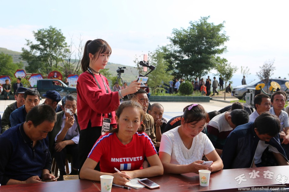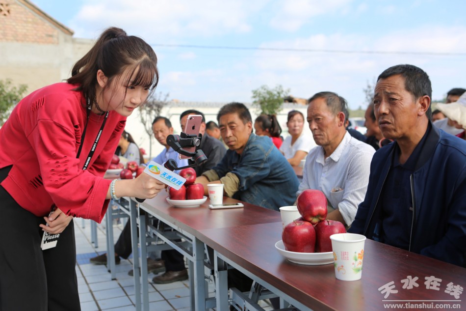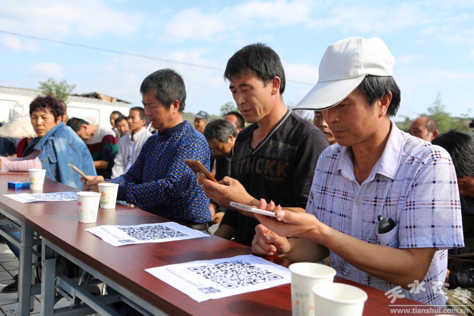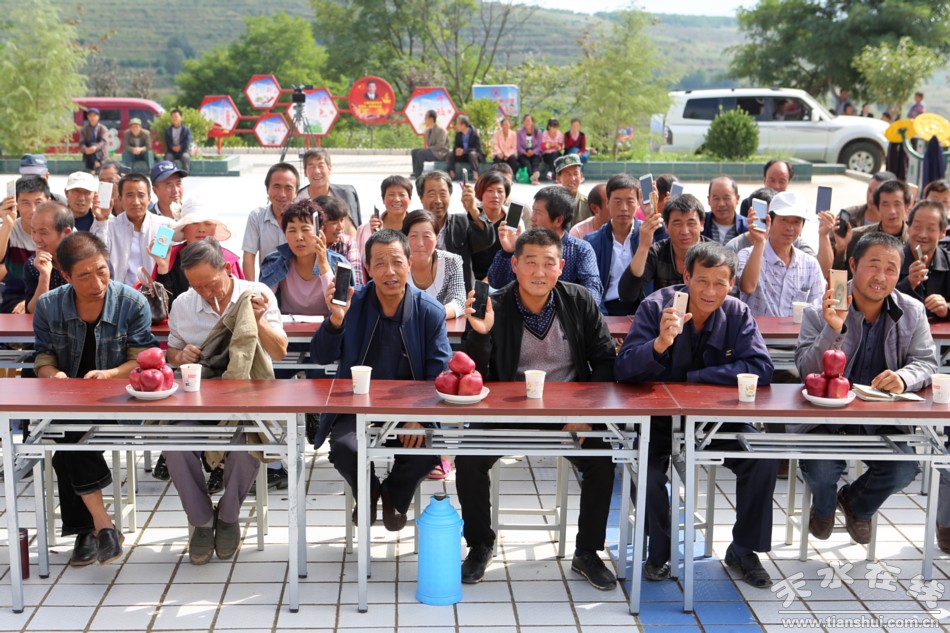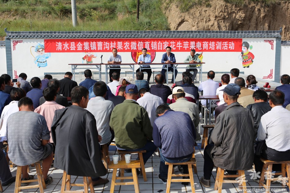 (9月7日下午,清水县金集镇曹沟村果农微信直销自家花牛苹果电商培训在该村文化广场开班授课。)