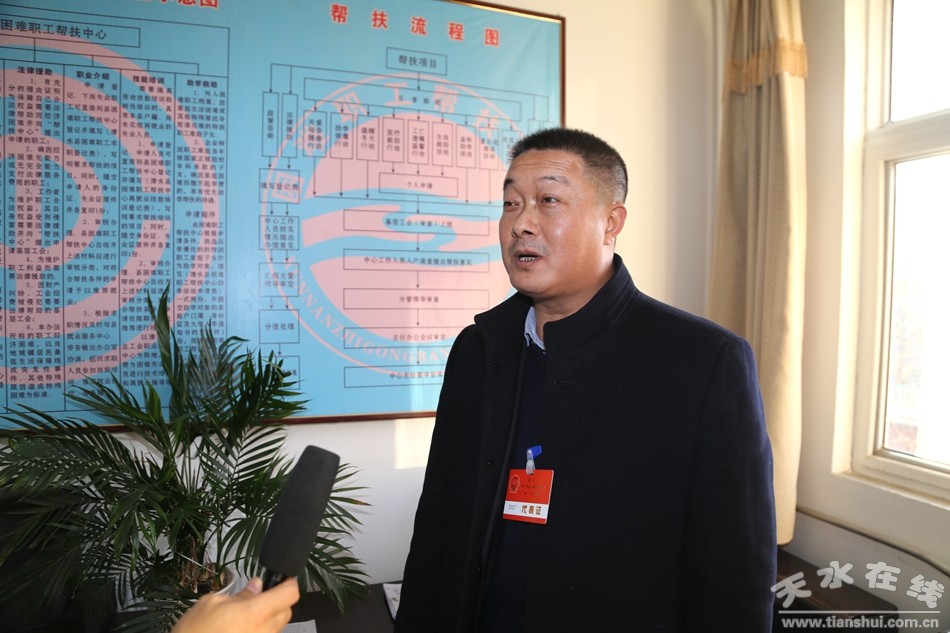 12月24日,清水县第十七届人民代表大会第二次会议分团讨论会上,县人大代表、水务局长毛继国接受记者专访。