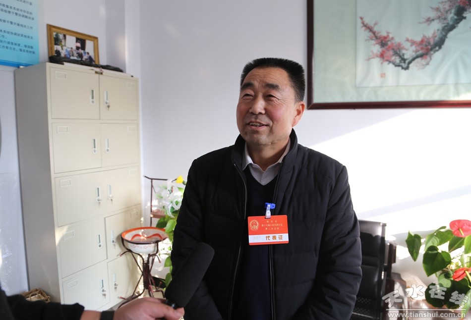 清水县第十七届人民代表大会第二次会议分团审议会上,县人大代表、草川铺镇黄崖村党支部书记李金喜接受记者专访。