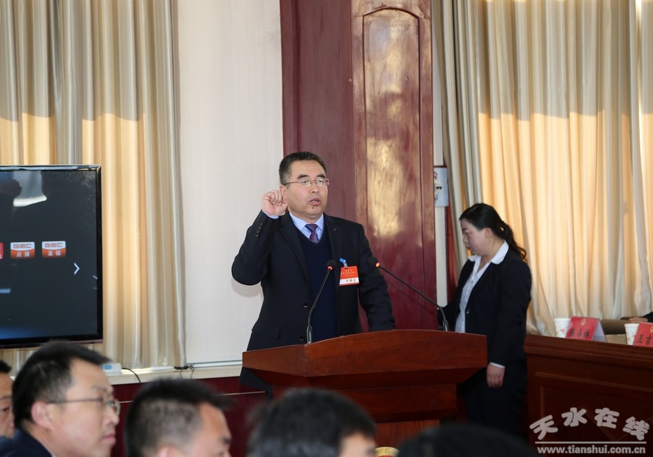(新当选的清水县监察委员会主任马利民向宪法宣誓)
