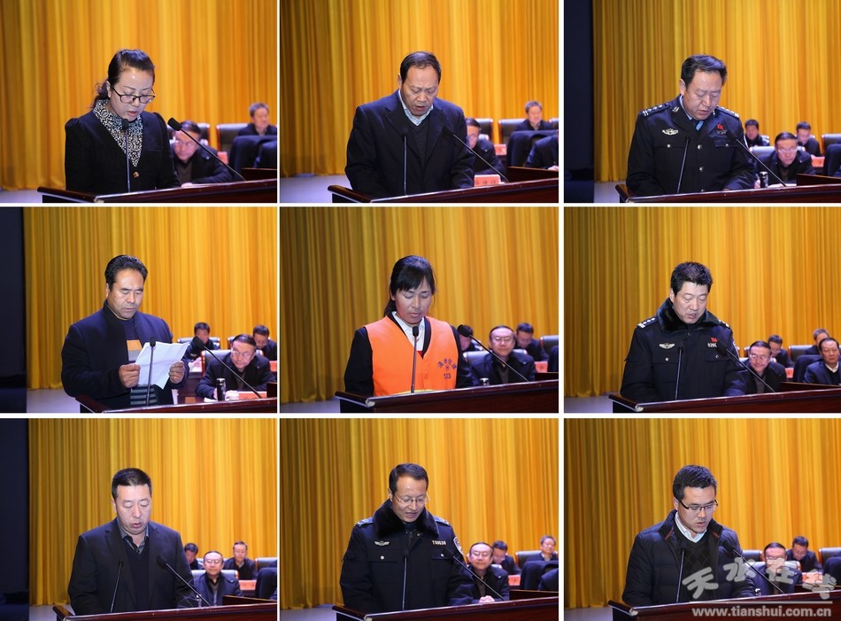 (先进集体和个人代表做经验交流发言,有关职能部门做表态发言)