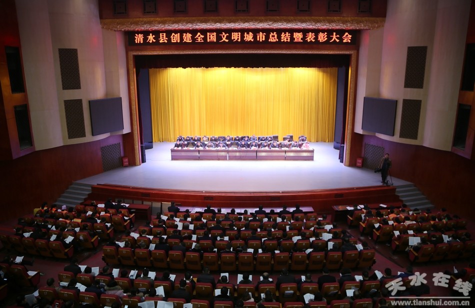 12月28日,清水县召开创建全国文明城市总结暨表彰大会。会议全面回顾3年来的创建历程,全面部署新一轮的创建工作,全面动员全县上下接续奋斗,全力确保新一轮创建工作,踏着新时代催人奋进的壮丽鼓点,迎着2020年全面建成小康社会的如期实现,结出丰硕成果,力争折桂摘冠。