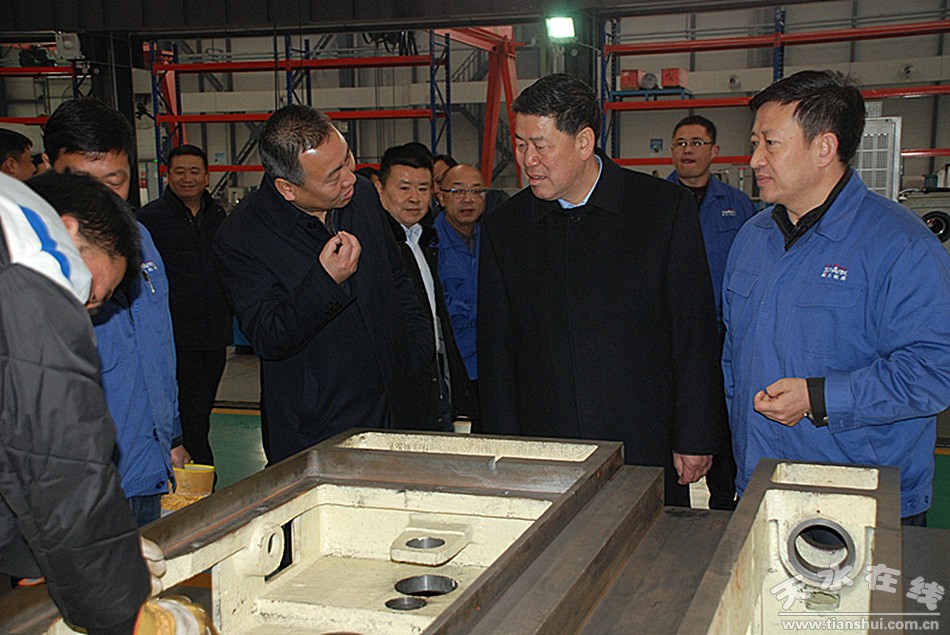 12月22日,天水市委副书记、市长王军,副市长郝文杰一行,在市政府秘书长王祥林,市企工委主任何时晓斌等市直有关部门领导,以及天水经济技术开发区管委会主任马小龙,麦积区委常委、常务副区长牛新虎等领导陪同下来公司调研。公司领导刘胜、蒋俊、郭建慧、汪旭东汇报工作,陪同参观生产现场。