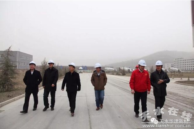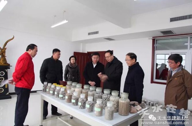 2017年12月29日上午,甘肃省委统战部副部长、省工商联党组书记赵少智一行前来天水华建工程新材料有限公司现场调研指导工作。天水市委常委、副市长李晓东,省工商联调研部部长吕晓明,省工商联经联部部长贠国庆,省委统战部三处副调研员杨建国,市工商联主席宋玉香,副主席左沁芳一同调研。