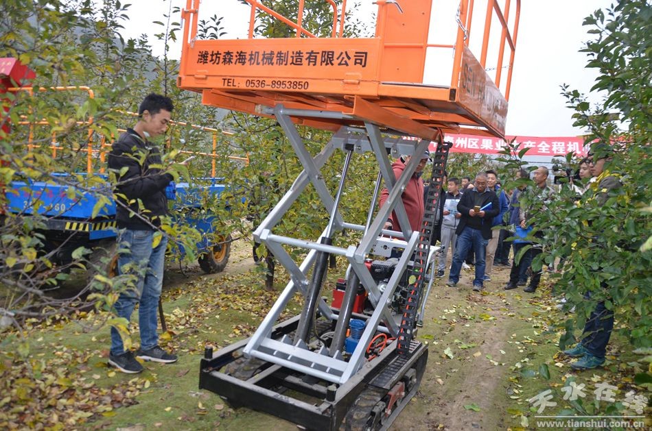 11月6日,由天水市农业局农机推广站和秦州区农业局农机管理站联合举办的秦州区果业生产全程机械化现场演示会,在秦州区太京镇平峪沟林果基地举行。秦州区果业局和来自全区的林果专业户、农机合作社负责人近百人参加了现场演示会。