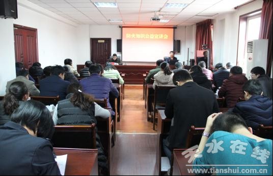 为了进一步加强冬季消防安全工作,增强干部职工消防安全知识和应急自救能力,预防和减少火灾事故的发生。2017年12月22日下午,我局特邀甘肃省五进防火知识宣传中心王友龙教官给全局干部职工专题讲授防火安全知识,全局干部职工80余人参加了讲座。
