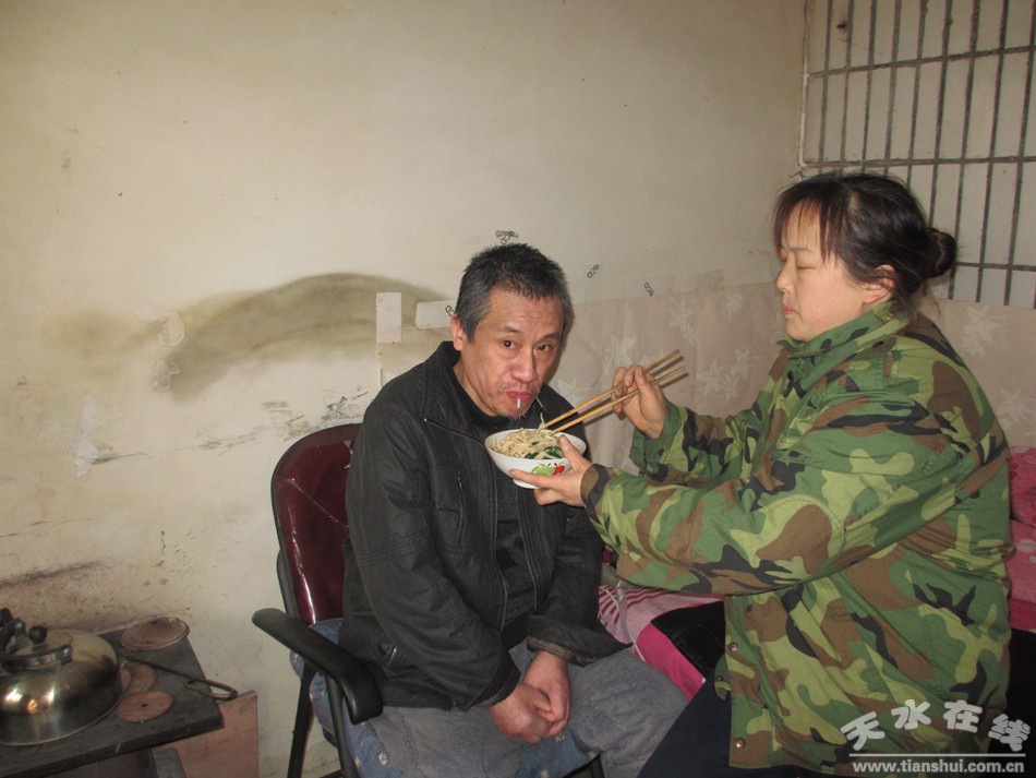 在秦州区西关街道解放路务农巷59号院有这么一个家庭,女主人名叫朱召梅,现年45岁,他们的家庭成员很特殊,除了她和再婚丈夫以及三个孩子外,他们还照顾着一位瘫痪的病人,让许多人诧异的是,这个人既不是他们的家人,也不是亲戚,而是朱召梅的前夫。