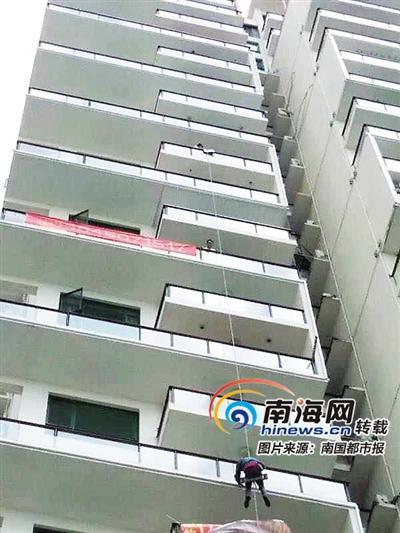 此前报道:三亚“蜘蛛侠”高空拆除广告 绳子被割断坠落受伤