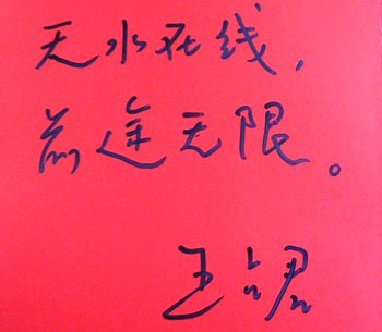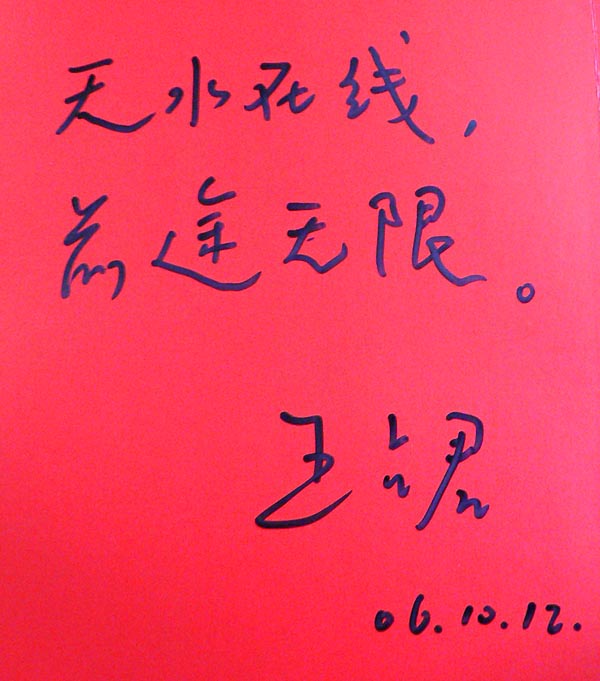 图为《十月》杂志主编王占君正在为365bet现金开户题词。