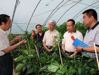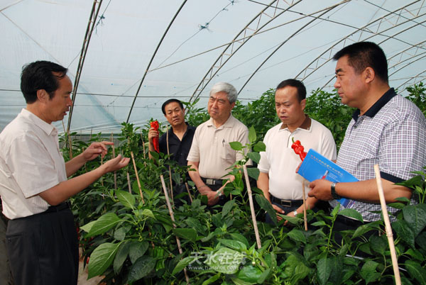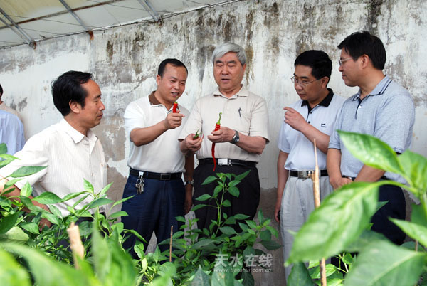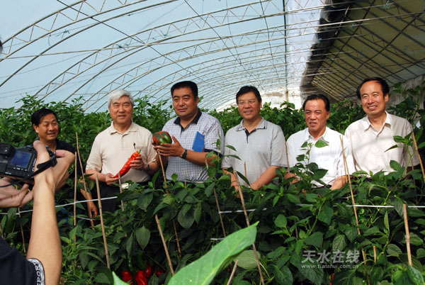 (中国工程院院士、中国空间技术研究院原院长、神舟1—5号飞船总设计师戚发轫考察天水农业高新技术示范园区)