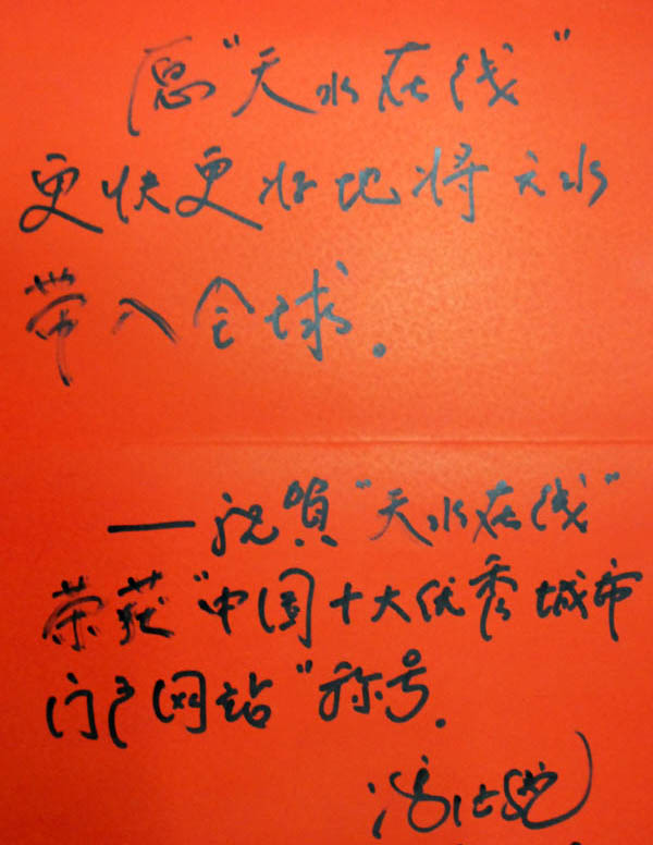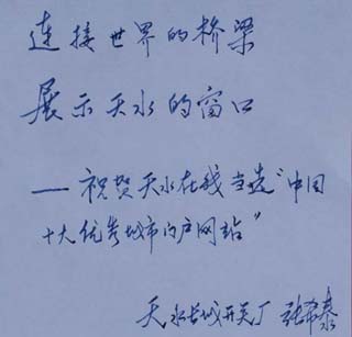 天水市市长张广智题词祝贺