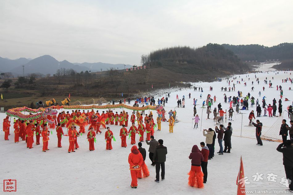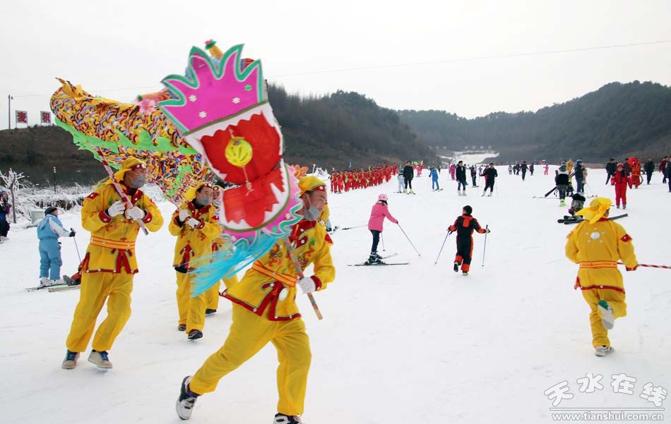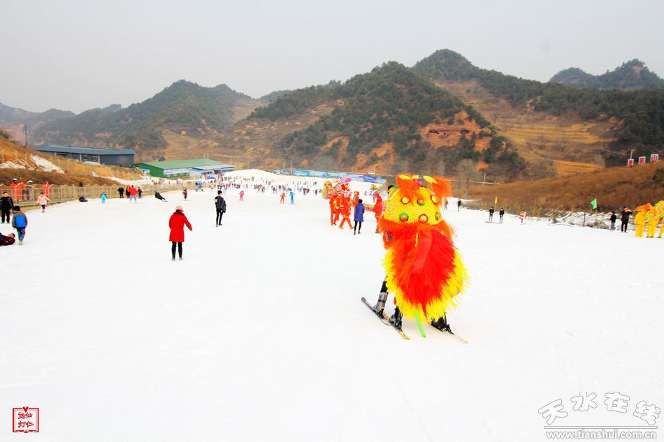 1月31日,农历大年初四,年味正浓,麦积山滑雪场人山人海。有大人、有小孩,有滑的、有看的、有摔交的,更有那麦积区红崖村社火队前来耍社火拜大年。怎一个热闹了得。