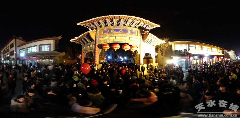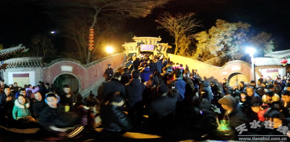 从2月4日晚开始(农历正月初八),作为“秦州八景”之一的天水玉泉观又一次迎来盛大的朝观庙会,天水市民从四面八方涌向玉泉观祈福纳祥,从而拉开了一年一度的“上九朝观”大幕。据估计,从昨天晚上开始至今日凌晨有多达十万群众涌向玉泉观祈福纳祥。