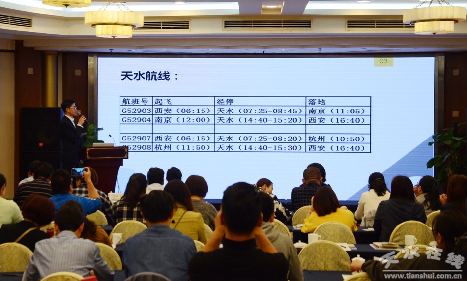 (华夏航空天水市场部经理冯凯介绍天水=南京航线情况)