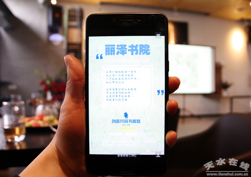 丽泽书院坐落于天水市秦州区佳水岸小镇B座6号楼位置,书院以“传承国学经典、推广人文阅读、传播茶咖文化”为初心,积极遵循国家“大众创业、万众创新”的导向,创意特色的综合性人文书院,打造一样的书院,不一样的文化情怀,将成为天水城市一张饱含情感的名片象征。