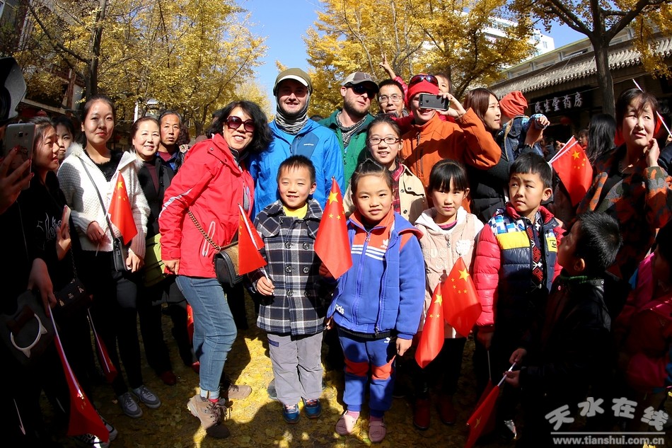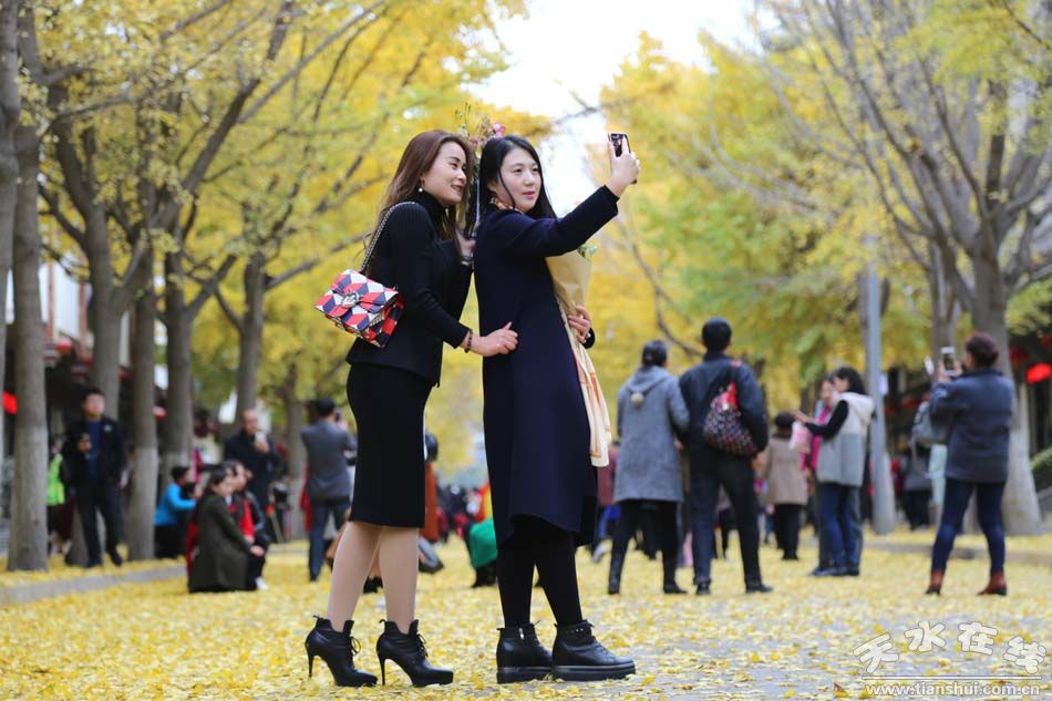 11月8日,秦州区政府将铺满金黄银杏叶的青年北路正式命名为“黄金大道”,供市民观赏游玩。自当日起,“黄金大道”上人流如织,热闹非凡。