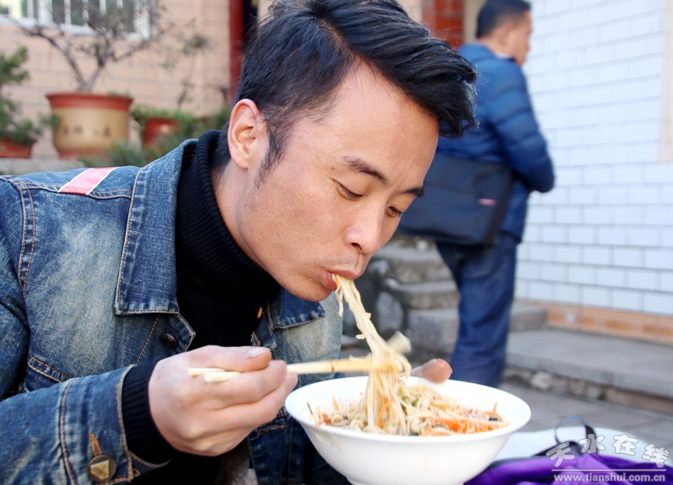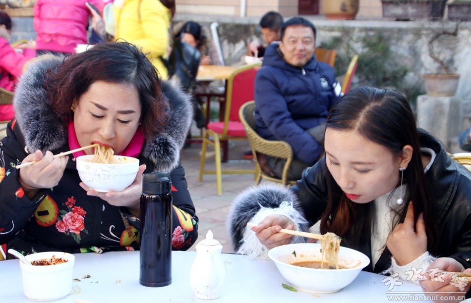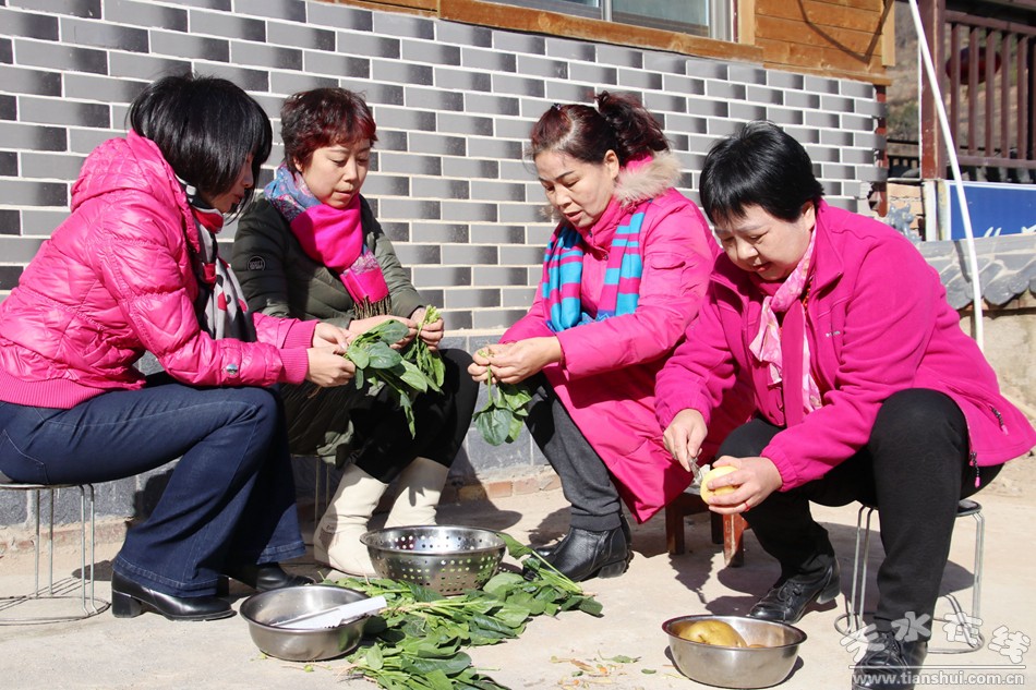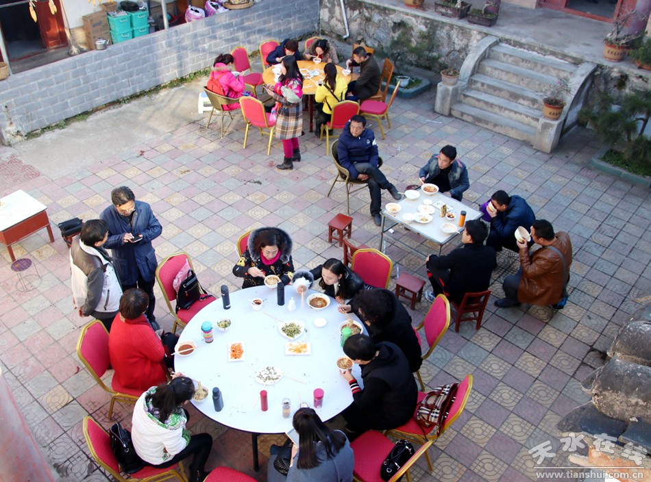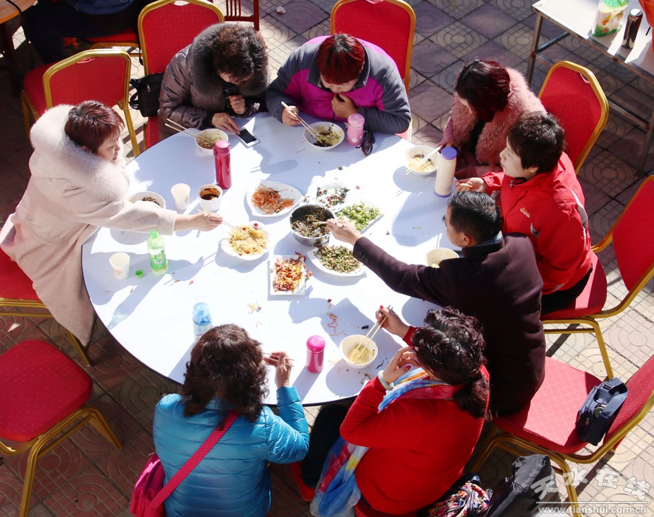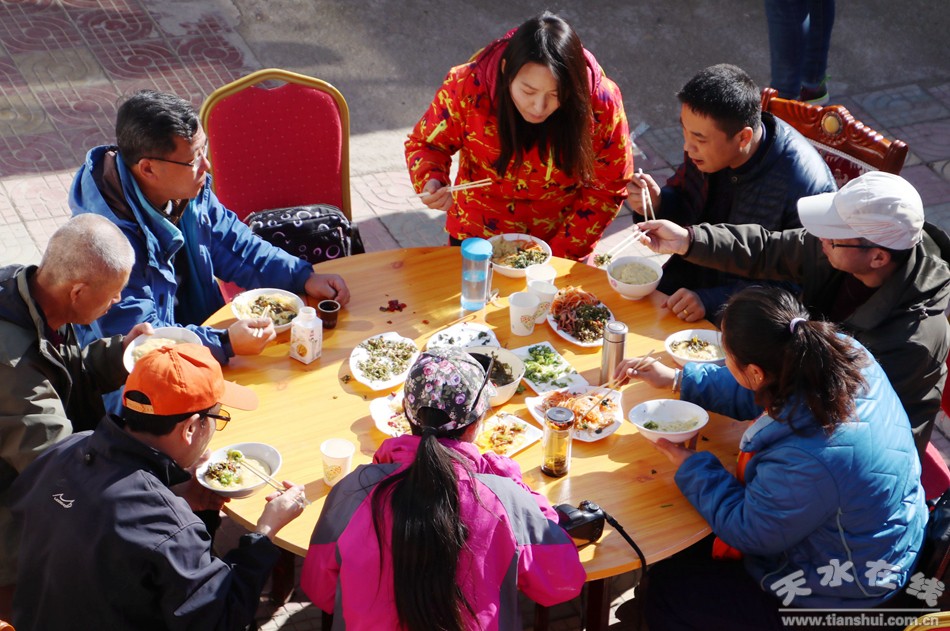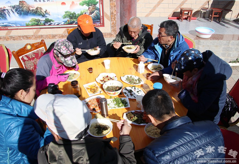 (天水市职工合唱团的团员在“万喜农家乐”吃农家饭) |