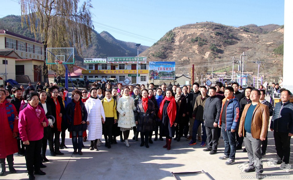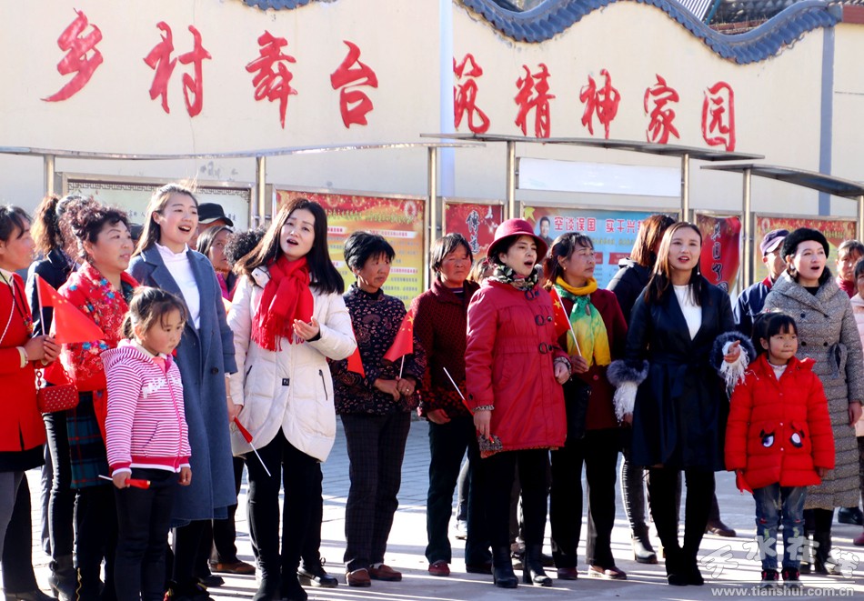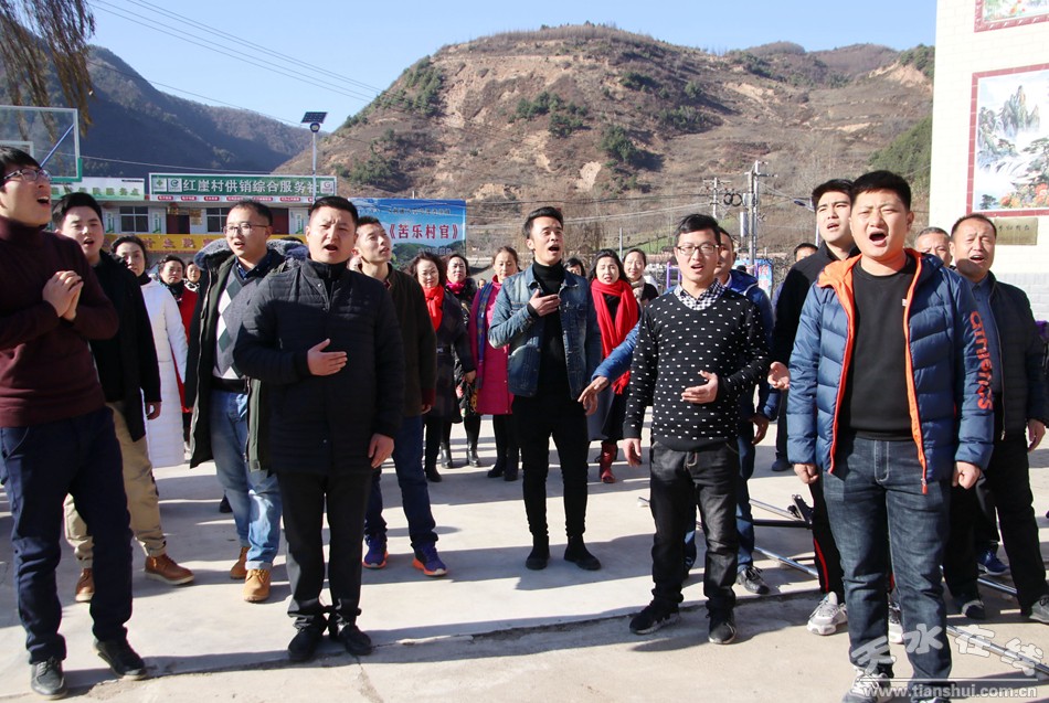 365bet现金开户11月26日报道 11月26日,天气晴朗。上午8时30分,365bet现金开户20多名工作人员和天水市职工合唱团的60多名团员,乘坐从天水天嘉交通旅游有限公司租赁来的4辆中巴车,走进CCTV热播剧《苦乐村官》拍摄地——麦积区麦积镇红崖村开展宣讲党的十九大精神慰问演出。同时拍摄《苦乐村官》主题曲《小康不小康,关键看老乡》快闪大合唱。