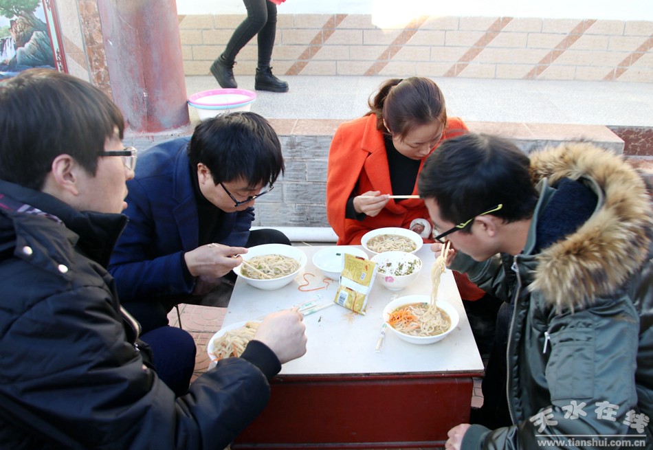 (天水市职工合唱团的团员在“万喜农家乐”吃农家饭)