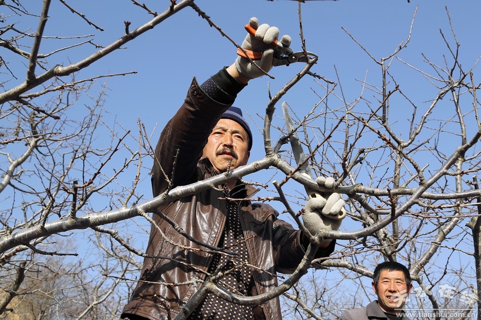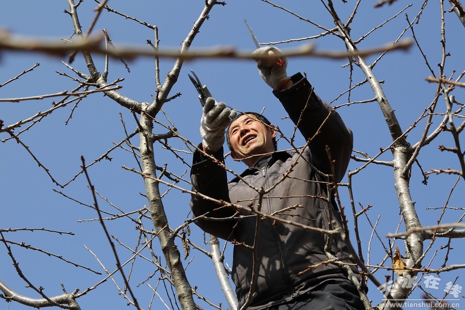 (天水市秦州区玉泉镇烟铺村的果农正在为樱桃树剪枝)