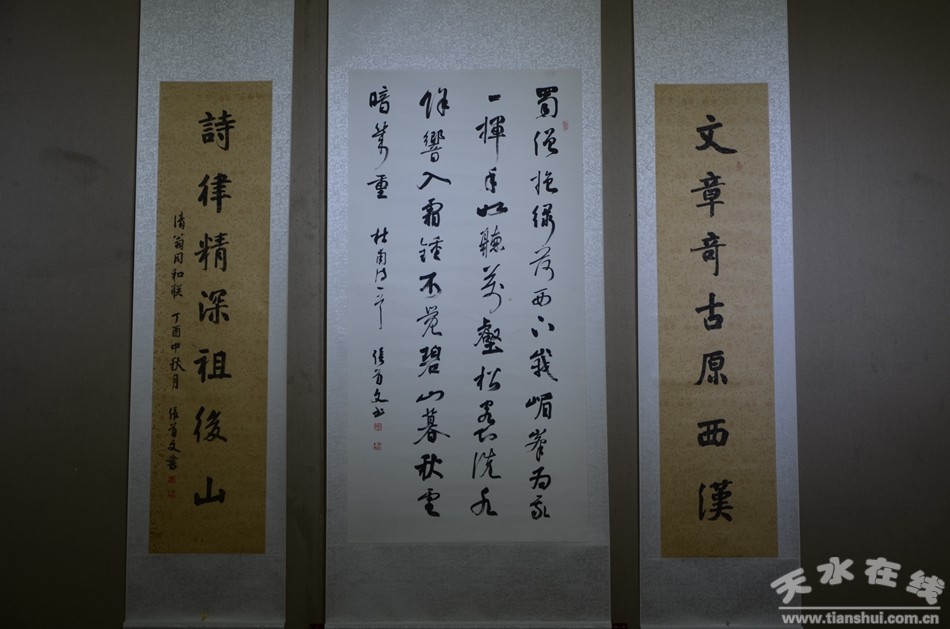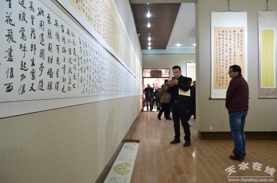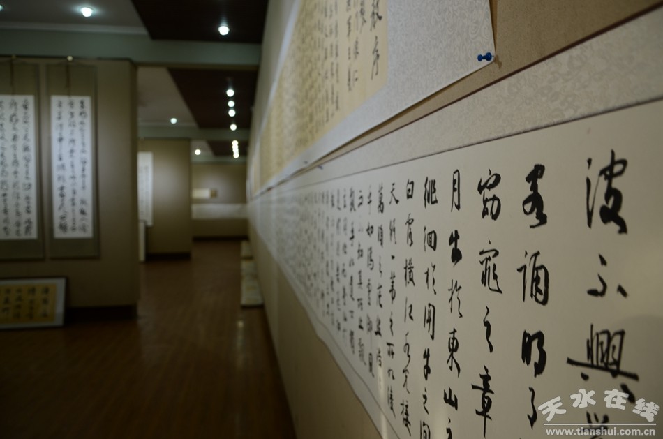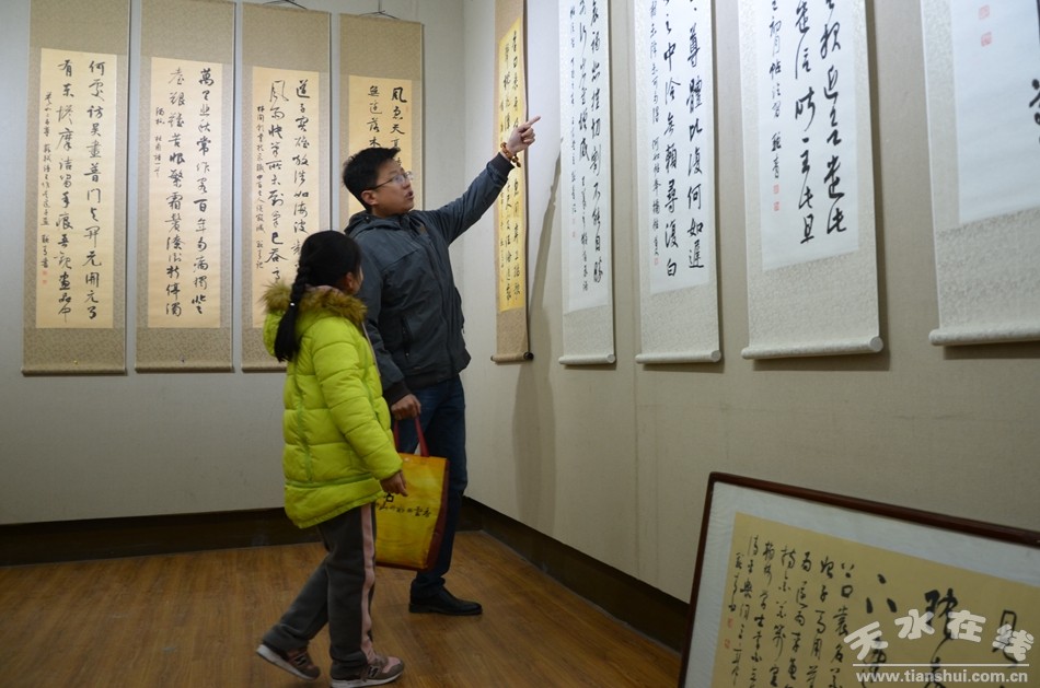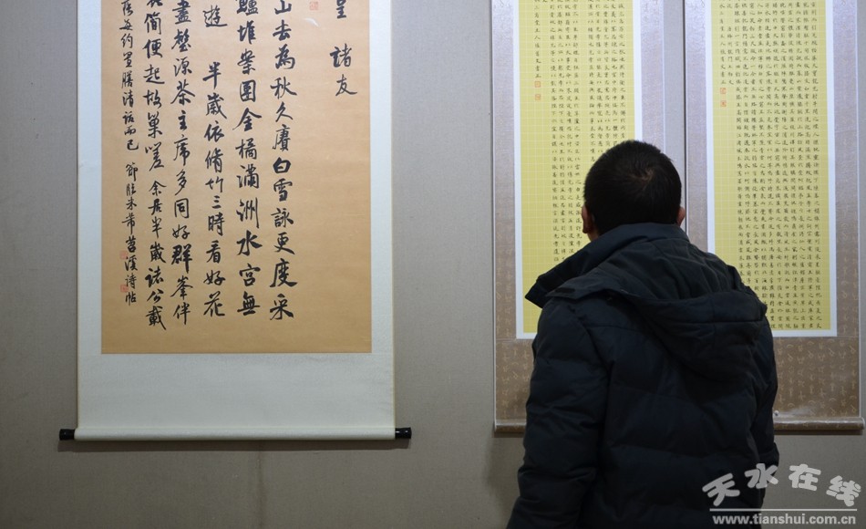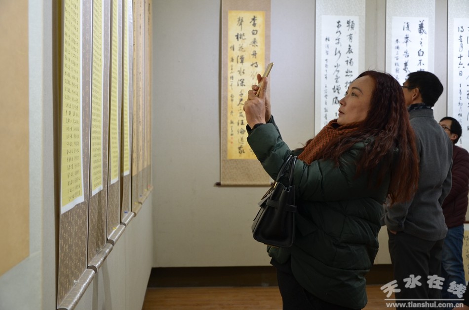 几千年的中国书法发展史,承载了人们对艺术的理想和智慧,映衬着人们的精神追求和对书法艺术的喜爱。12月16日,张首文书法作品展在天水市文化馆开展,一幅幅俊秀、飘逸,又不失挺拔的书法作品绽放着艺术无穷的生命力,吸引了众多书法爱好者前来观赏品味。由天水市文学艺术界联合会、天水师范学院美术与设计学院主办的本次书法作品展为期四天。