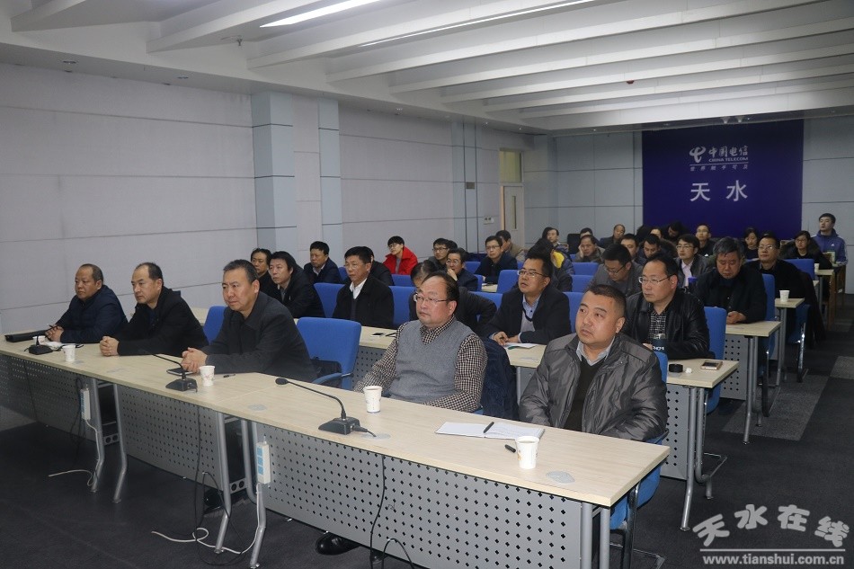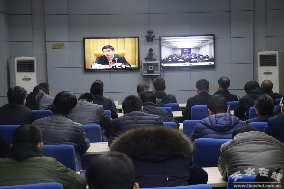 12月25日,天水市工信委党组书记、主任何晓斌带领机关全体干部职工在市电信局二楼会议室收听收看了2018年全国工业和信息化工作电视电话会议。会上,工业和信息化部党组书记、部长苗圩作了题为“全面贯彻党的十九大精神 奋力谱写制造强国和网络强国建设新篇章”的讲话。