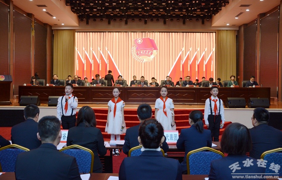 上午9时,大会在雄壮的国歌声中开幕。4名少先队员代表向大会献辞。孩子们用稚嫩的声音抒发了对青春梦想的追逐与渴望,表达了从小好好学习、为建设幸福美好新天水做准备的决心。