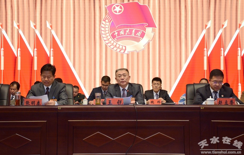 王锐在讲话中代表市四大组织对大会的召开表示热烈祝贺,向全体代表和全市广大团员青年、共青团干部和青少年工作者致以亲切问候。他强调,当前,天水发展正处在一个重要阶段,贯彻落实好党的十九大部署的各项任务,进一步加快转型升级、强市富民步伐,是包括广大团员青年在内的全市上下共同的愿望和责任,也为广大青年施展才华、干事创业、实现抱负提供了广阔的空间和舞台。希望广大青年志存高远,注重理论武装自己,学懂弄通做实党的十九大精神,深学笃用习近平新时代中国特色社会主义理论,把握人生前进的正确航向;敏于求知,认真学习、刻苦钻研专业知识和业务技能,坚持知行合一、以知促行,成为本职岗位的行家里手和可堪重任的有用之才;立德修身,坚持用社会主义核心价值观引领知识教育、引领道德建设,唱响主旋律、传递正能量,展现当代天水青年的良好精神风貌;踏实干事,立足本职,勇于担当,在全市经济社会发展大局中建功立业,积极到农村基层的广阔天地去经受锻炼,为坚决打赢脱贫攻坚战大显身手、尽智出力。