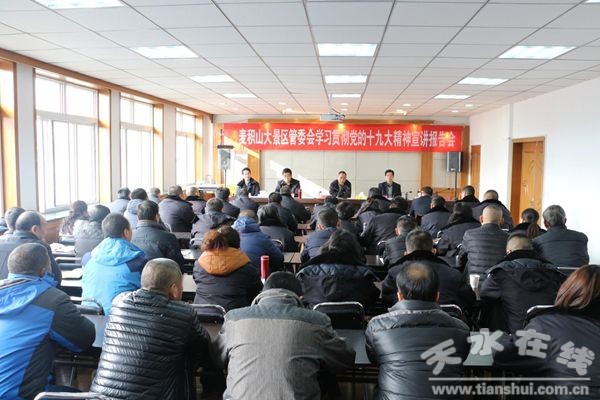 学习宣传贯彻党的十九大精神,麦积山大景区管委会组织党工委领导班子成员分别对十九大精神进行宣讲解读。12月25日上午,麦积山党工委进行十九大精神第四次宣讲,党工委委员、管委会副主任马有仓领读了十九大报告部分内容,针对十九大新修改《党章》做了辅导报告。