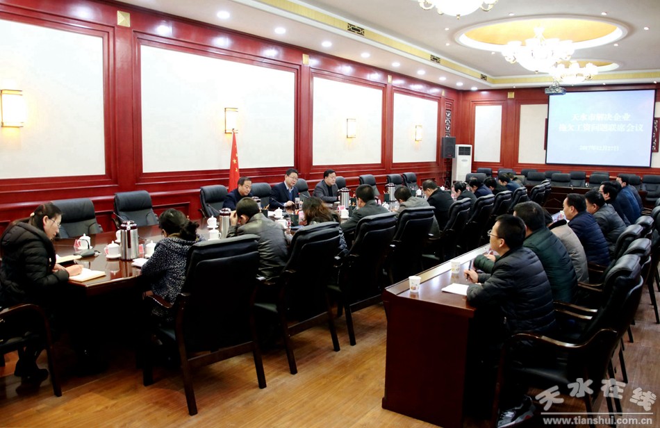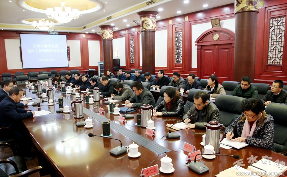 12月27日,天水市副市长张建杰主持召开天水市解决企业拖欠工资问题联席会议,学习贯彻国家和省、市关于全面治理拖欠农民工工资问题的部署要求,安排部署全市农民工工资治欠保支工作。