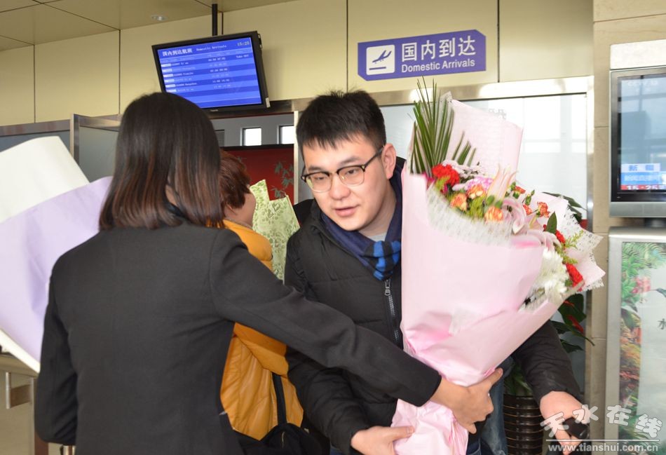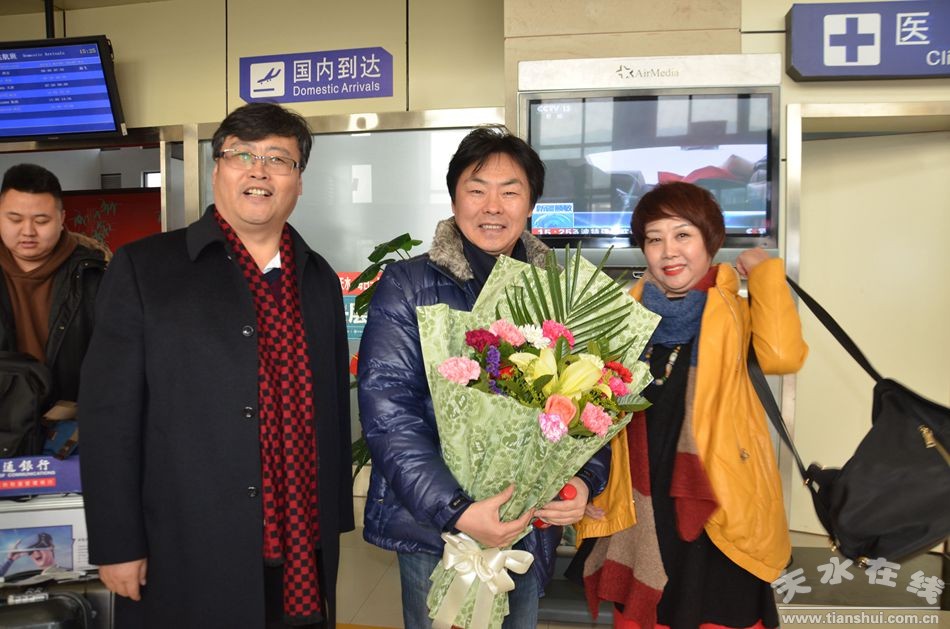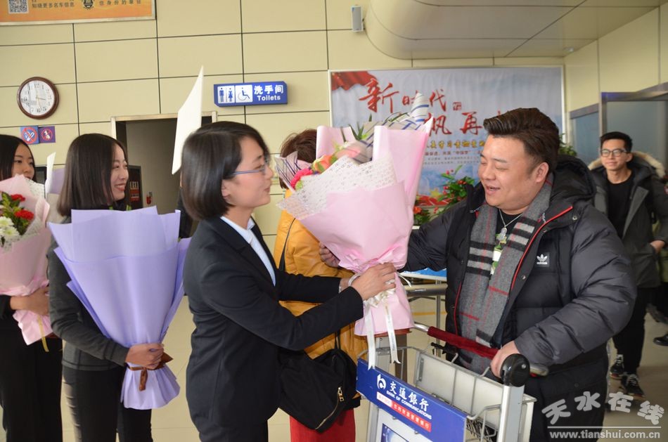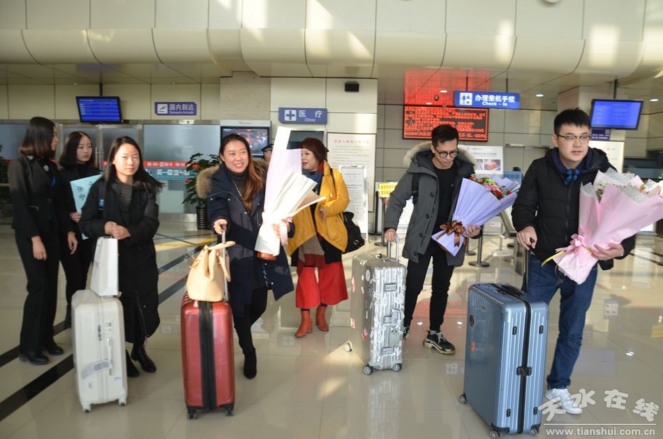 (参加“2018天水市新年音乐会”的演出嘉宾抵达天水机场)