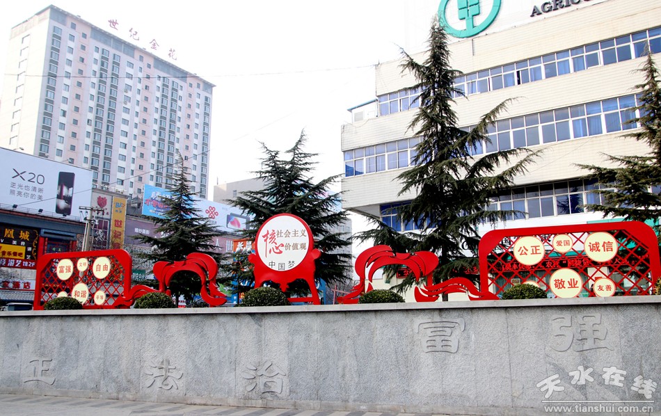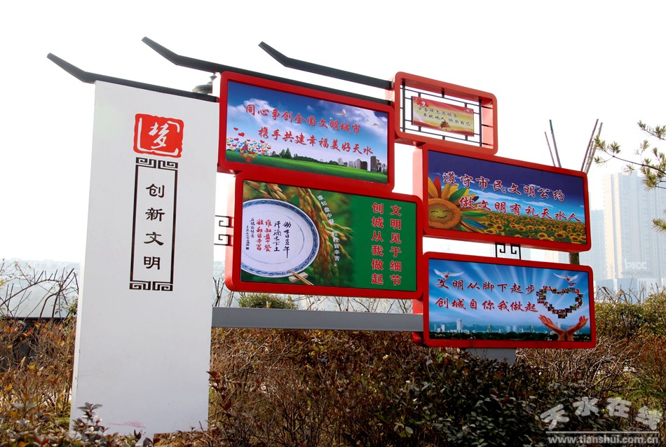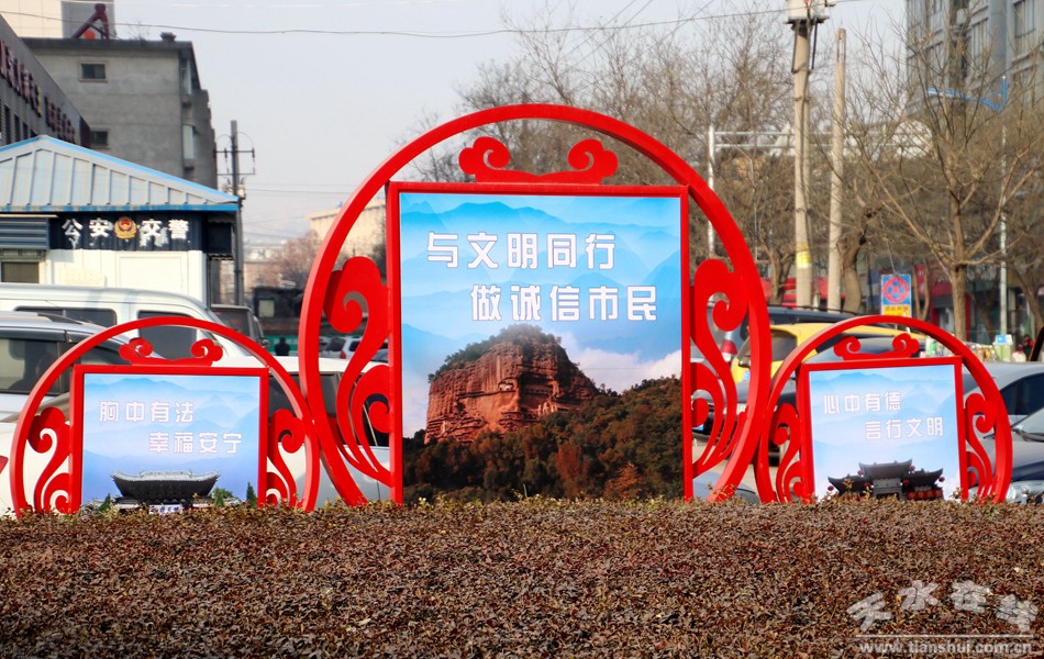 根据省委宣传部等十一部门关于开展培育和践行社会主义核心价值观主题宣传教育十大创建活动的实施方案,天水市结合实际,对这项工作及时安排,全面规划,加强检查督促,推动十大创建行动在各县区同步开展。市委宣传部、市文明办在麦积区召开了十大创建行动现场推进会,并组织观摩学习,带动全市各地创建工作全面推进。各县区在行动中以城区公园广场、主街道、居民社区为重点,构建覆盖爱国主义教育基地、公园景区、学校机关、社区村镇、交通网络等重点公共场所的宣传教育阵地,精心打造了一批示范点,取得初步成效。目前,由市文明办在秦州打造的主题广场、主题公园、示范街等项目正在加紧施工,将在人民公园、龙城广场、天河广场、籍河风情线沿线、市区主要干道等安装193处以社会主义核心价值观和创建全国文明城市为内容的宣传牌,并将解放路打造成宣传展示“天水好人”一条街。同时,将在人民公园、龙城广场、天河广场开通免费WiFi,通过无线网络入口界面宣传社会主义核心价值观等精神文明建设方面的内容。