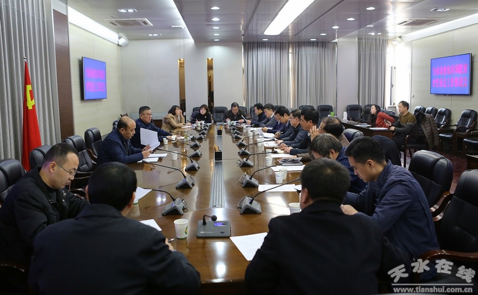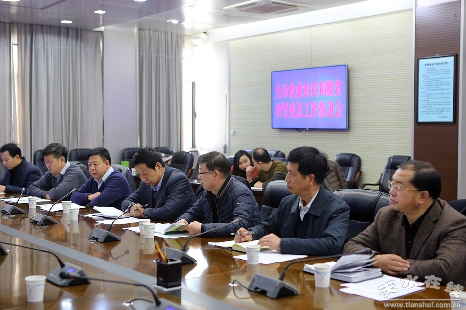 12月27日下午,天水市委常委、宣传部长蒲军主持召开全市农业农村和脱贫攻坚重点工作推进会。会议传达了省脱贫攻坚领导小组2017年第五次会议精神,传达了省市主要领导关于脱贫攻坚工作讲话主要精神;研究部署贯彻落实工作;安排近期农业农村重点工作。