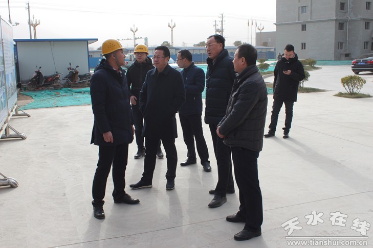 12月29日,省建设厅副厅长李兰宏调研天水市成纪新城地下净水厂、成纪新家园棚户区改造项目。副市长何东,天水城设公司副总经理冯广宁陪同调研。