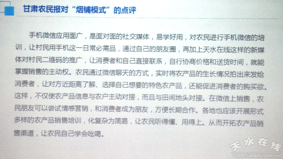 在培训班上,365bet现金开户工作人员着重就村级电商扶贫的“烟铺模式”和“烟铺模式”在清水县大范围推广等情况进行了讲解。由于“烟铺模式”的简单易学,容易推广,受到了学员们的普遍欢迎。