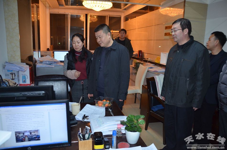 2017年12月31日晚,天水市副市长郝文杰前往市财政局、秦州区财政局、人行天水市中心支行等单位,看望慰问坚守在年终决算岗位上的国库和财政干部职工。