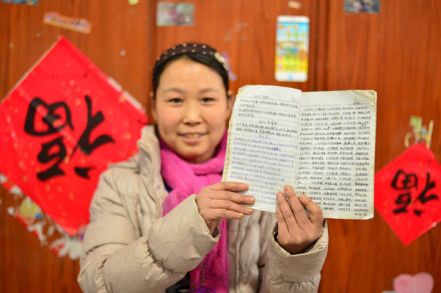 41岁的白茹云是河北邢台市南和县农民。她的抄写本上,密密麻麻誊写着2000多首古诗词。一些硬纸板和老日志本的正面、反面都留下她对古诗词如饥似渴的印记……