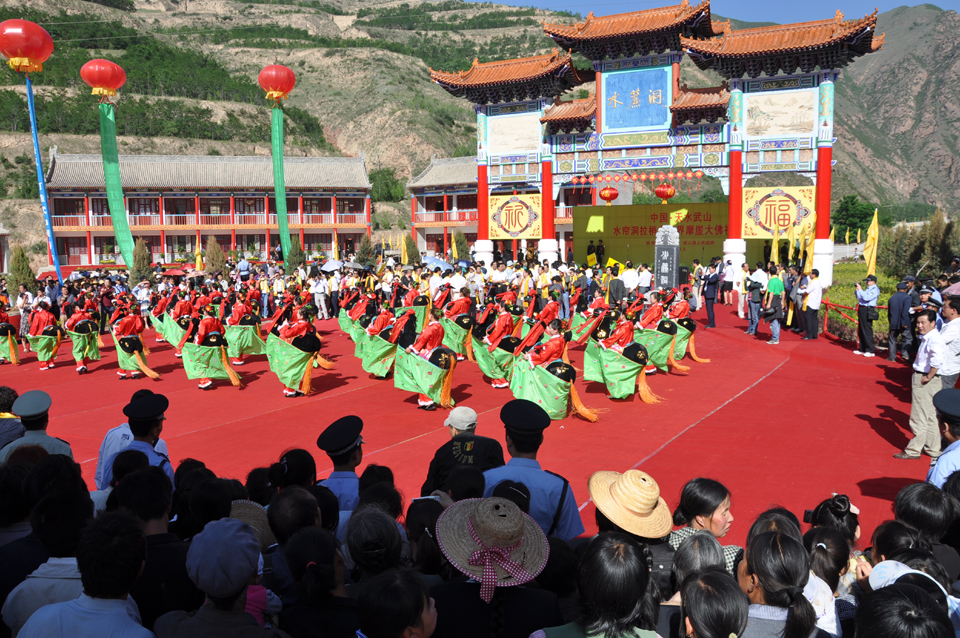 水帘洞石窟群处在群山环抱,山势突兀,峡谷交错,高岭横天,方圆五公里的独特丹霞地貌中,这里草木葱葱郁郁,环境恬静幽雅,距武山县城东北25公里。据文献记载和实地考证,明清时期,水帘洞石窟仍有一定规模的宗教活动,且范围有所扩大,在水帘洞石窟群方圆2.5公里的范围内分布有五台(莲花台、清净台、说法台、钟楼台、鸣鼓台)和七寺(千佛洞、拉梢寺、显圣池、粉团寺、砖瓦寺、金瓦寺、观台寺),其中多数现已无存。从现藏于水帘洞的清康熙四十九年(公元1710年)碑刻的内容来看,当时主要信仰由大势至菩萨转世的麻线娘娘。大约在清末至民国初年,道教开始入住水帘洞,并逐步占据了主导地位,道教信徒们在水帘洞大兴土木,修建了诸多楼台观宇,吸引了众多信徒,使水帘洞石窟群得以被外界的群众所知晓,并逐渐成为武山、甘谷、陇西、通渭四县的宗教活动中心。