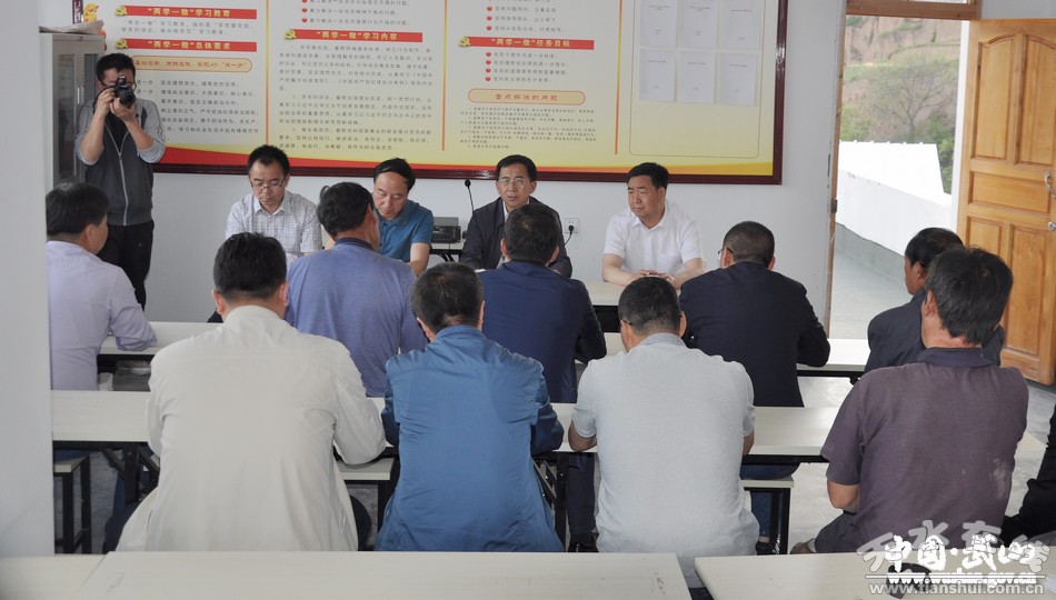 6月5日,天水市人大常委会党组书记、主任王光庆,市人大常委会秘书长杨坤来到武山县咀头乡双联点党口村、党建工作联系点吴山村,调研指导精准扶贫精准脱贫和基层党建工作,宣讲省第十三次党代会精神,传达学习市委全体会议精神。县人大常委会党组书记、主任张璞银,县委常委、组织部部长高朝峰陪同调研。