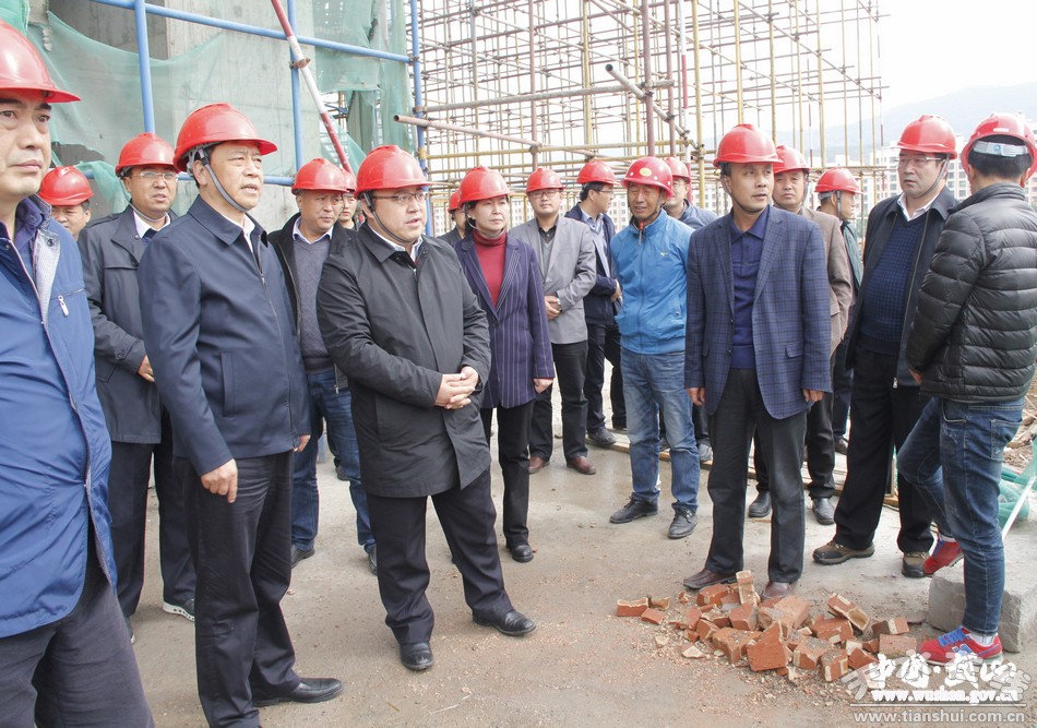 (在建设中的县体育馆调研)