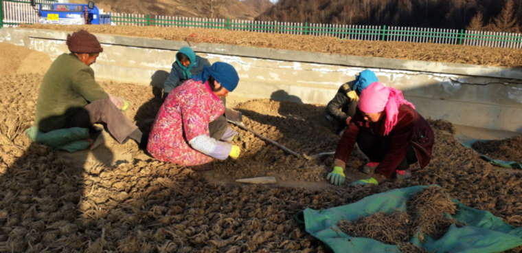 草滩村做为全乡最大的贫困村,发展产业经济,壮大产业规模一直是村“两委”班子带领全村村民脱贫致富的共同目标,近年来全村村民把种植当归做为主导产业,成为村民脱贫致富的产业支柱,今年村民更是把种植当归做为致富产业的重头戏,全村共种植1400余亩,看到喜获丰收的当归,每位村民喜上眉梢,为使当归能买上好的价钱,真正达到村民增收的目的,驻村干部和村干部忙了起来,共同谋划,出点子、找路子,创新产业销售模式,打破了以往不进行加工直接销售的老规矩、老传统,培养出自己的产业经济人,由当地的致富带头人对当归集中进行初加工,然后进行销售,既保证药材销路通畅,更使药材价格得以保障,今年,全村初加工后销售的当归预计创收400多万元,比往年多增收25万元。看着自己家的当归在家门口买了好的价钱,村民乐呵呢!从村民灿烂的笑脸上我们看到了他们在脱贫致富奔小康路上的信心与决心。