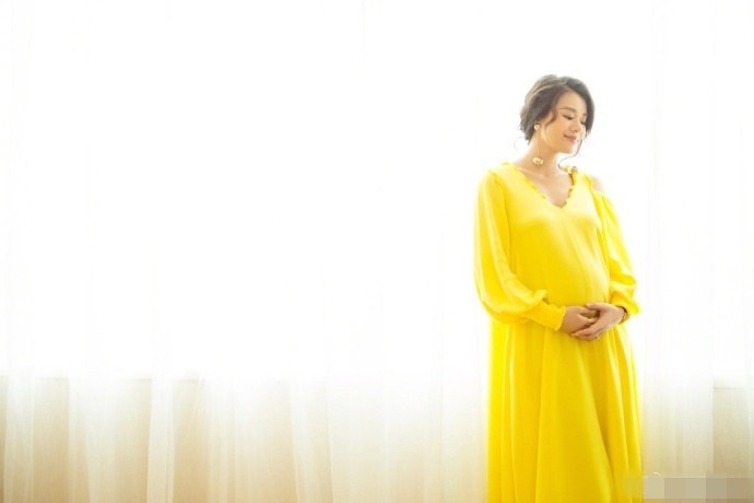 孕妈胡杏儿气色姣好,美丽高贵。