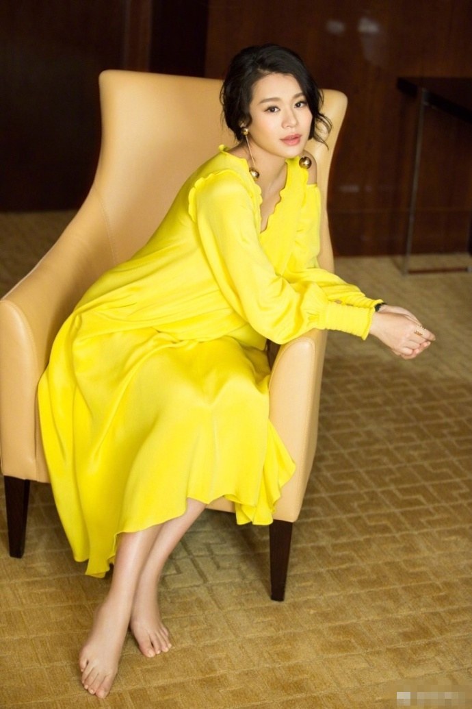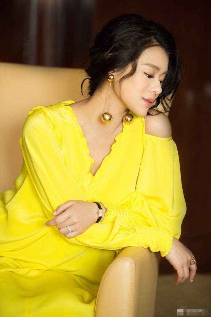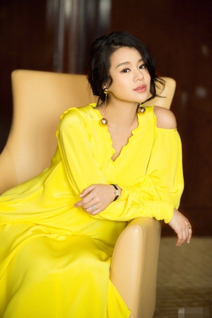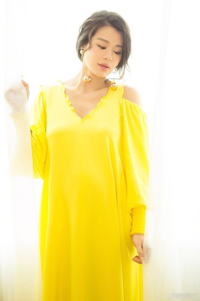 胡杏儿着黄裙显优雅。