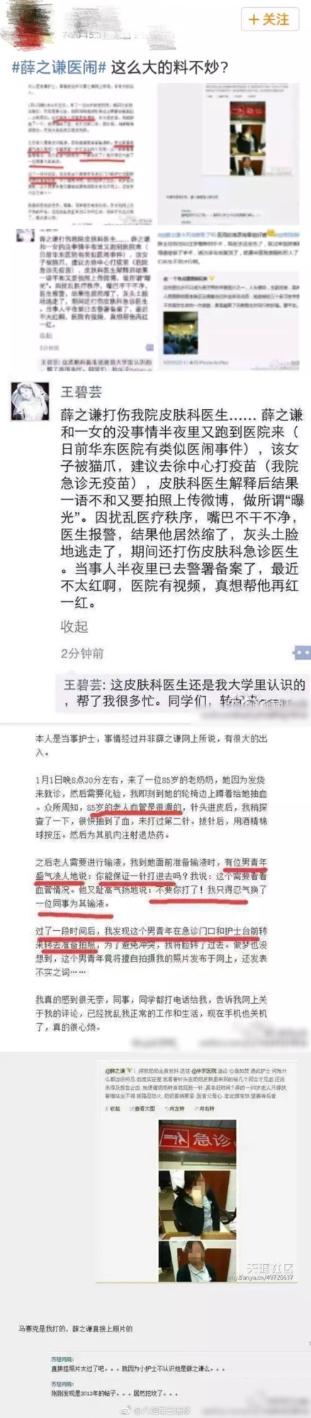 搜狐娱乐讯 近日,有网友扒出薛之谦曾经的医闹事件,并晒出当时发生事件的截图。据网友爆料,2014年,薛之谦带一位女生去皮肤科看病,明明是平诊,非要挂急诊,在医生好言相劝不果后,薛之谦对解释医生非法拍照上传微博,因滋扰正常医疗秩序,医生报警,最后动手打伤医生趁乱跑掉。