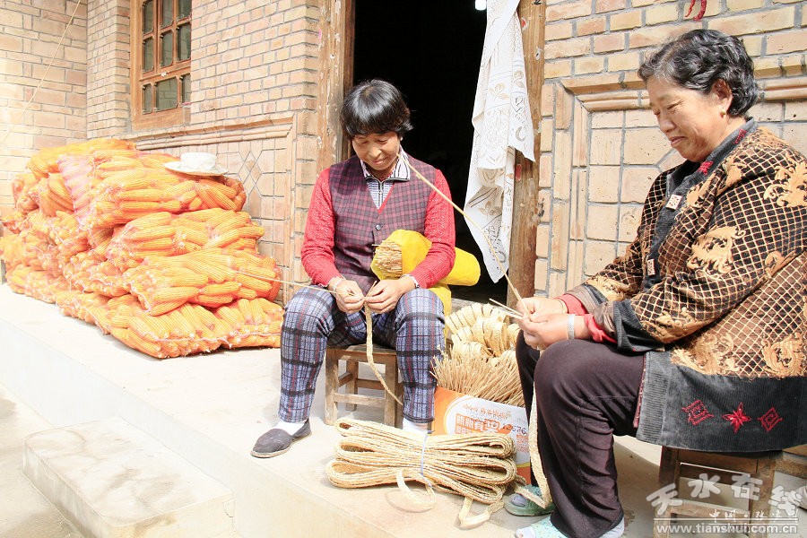 (10月3日,张家川县马关镇上豆村村民在编草编)