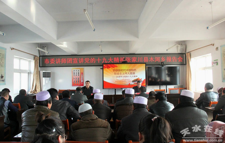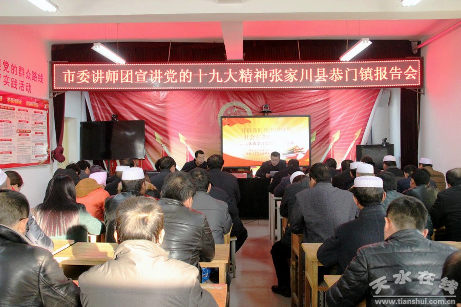 12月28日,市委讲师团成员、张家川县委党校高级讲师马喜梅、中级讲师马保东,分别在张家川县人社局、张家川镇、恭门镇、木河乡宣讲了党的十九大精神。