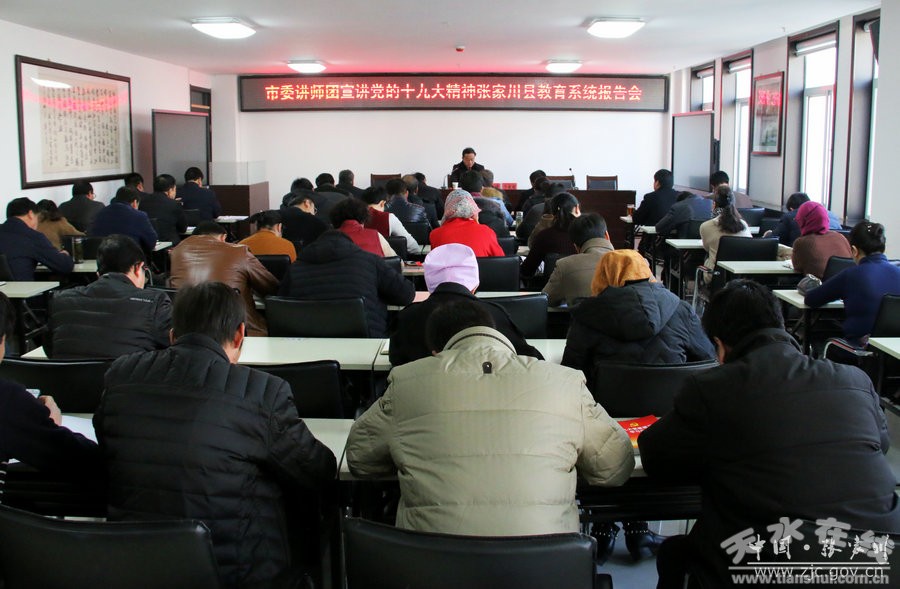 12月28日,天水市委讲师团成员、市政府研究室副主任于爱国为张家川县教育系统作党的十九大精神宣讲报告会。